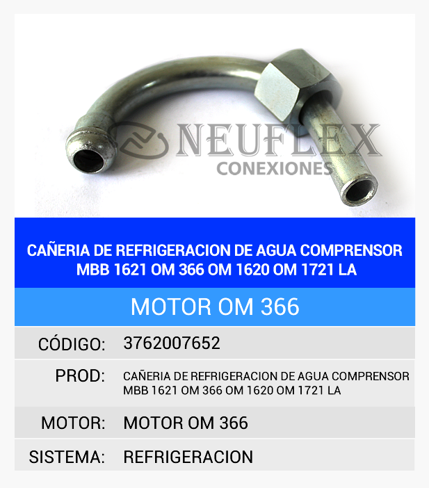Cañería de Refrigeración de Agua Comprensor Motor OM 366